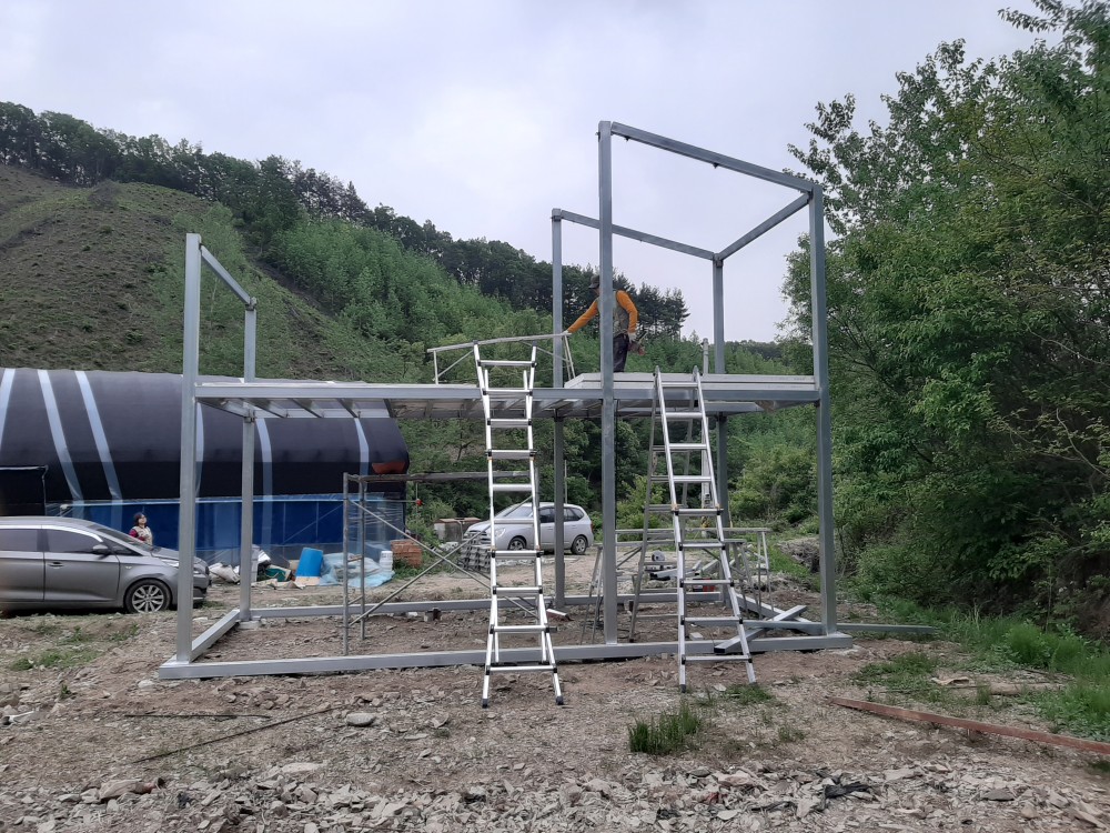 농막 복층각관용접 작업