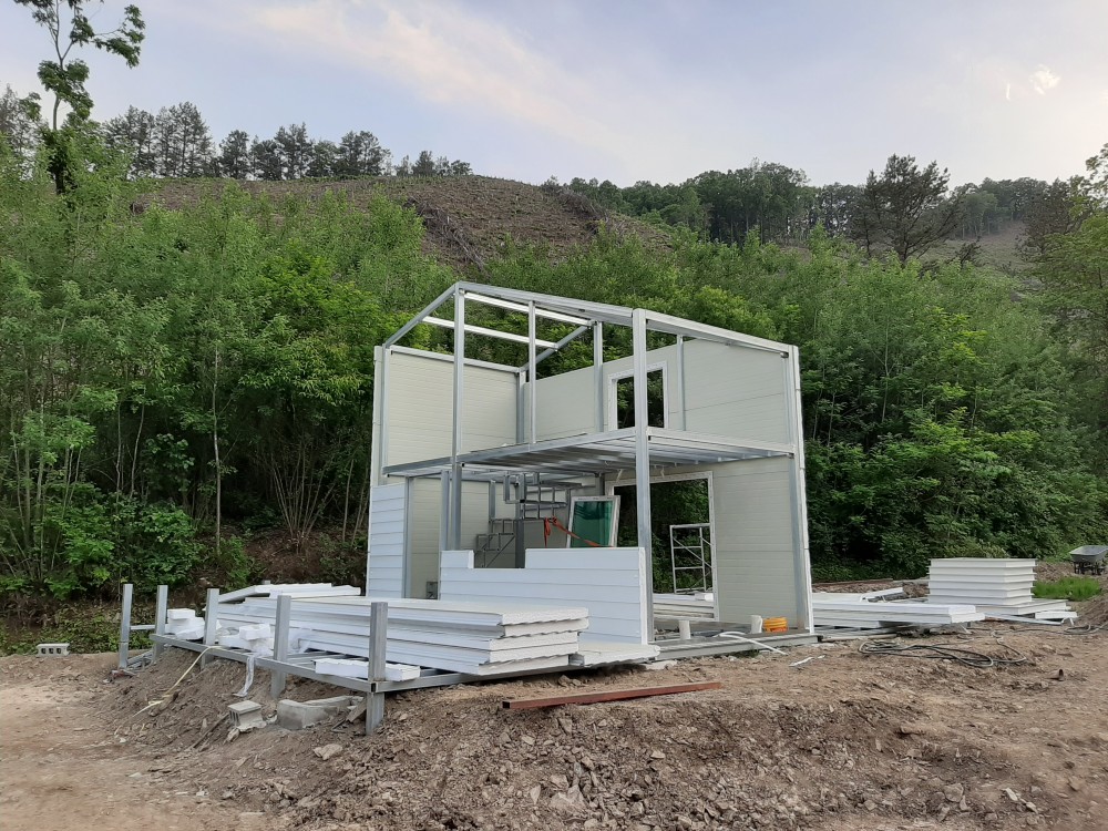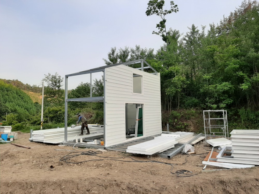 농막 외벽판넬 시공 및 샷시 문틀 작업