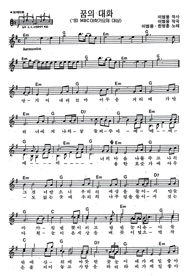 꿈의대화 - 이범용 한명훈 Guitar 코드와주법