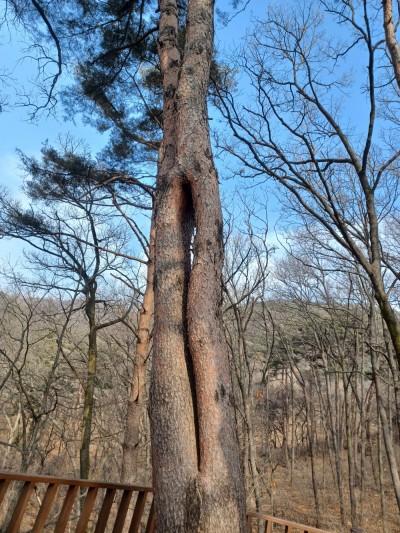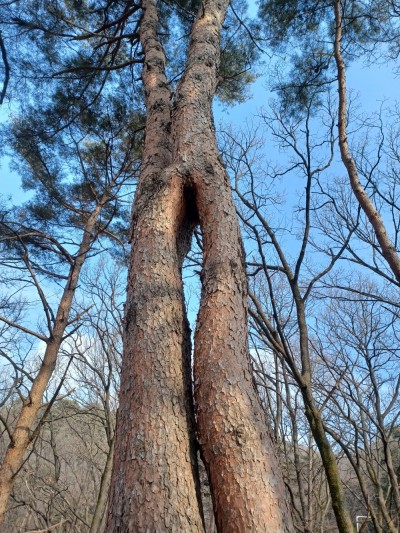 가지가 따로 자라다가 붙어서는 다시떨어져 사이좋게 자라네요